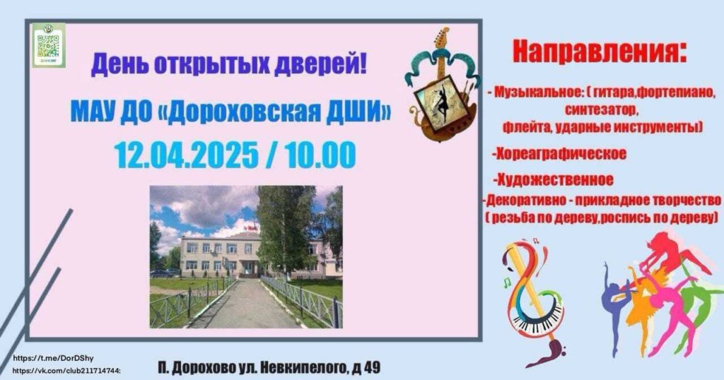 Рузский филиал ГАПОУ МО «Московский Губернский колледж искусств» приглашает на День открытых дверей, который состоится 12 апреля 2025 года в 10:00.
