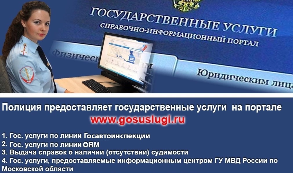 Для получения государственных услуг, предоставляемых ОМВД России по Рузскому муниципальному округу, можно воспользоваться порталом www.gosuslugi.ru, также для оплаты административного штрафа вы можете воспользоваться соответствующим сервисом на портале.