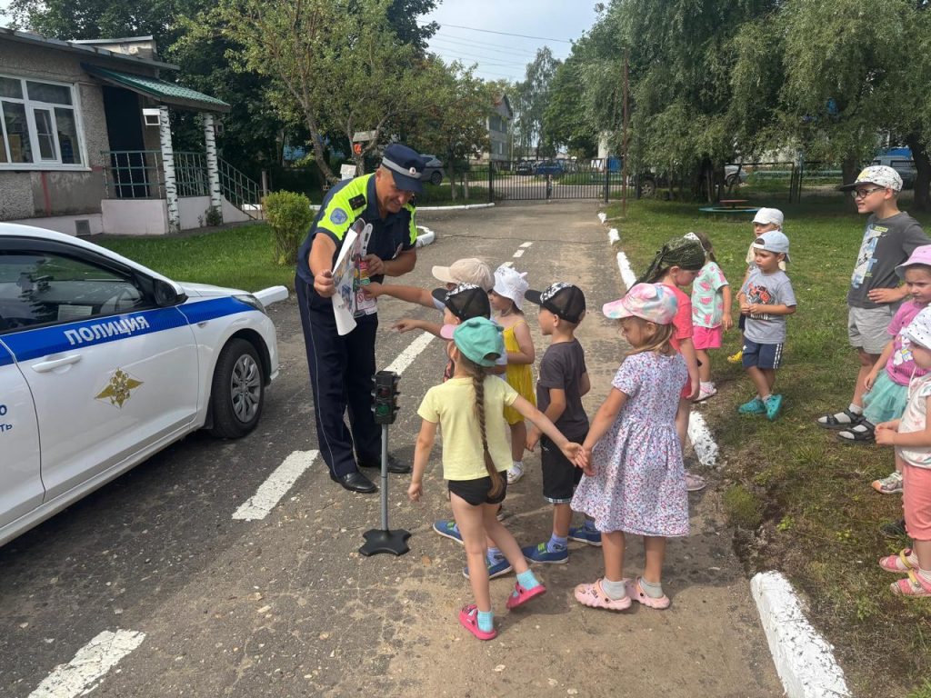 В завершение каждый получил символические подарки от сотрудника Госавтоинспекции – рисунки и раскраски с изображением светофора.