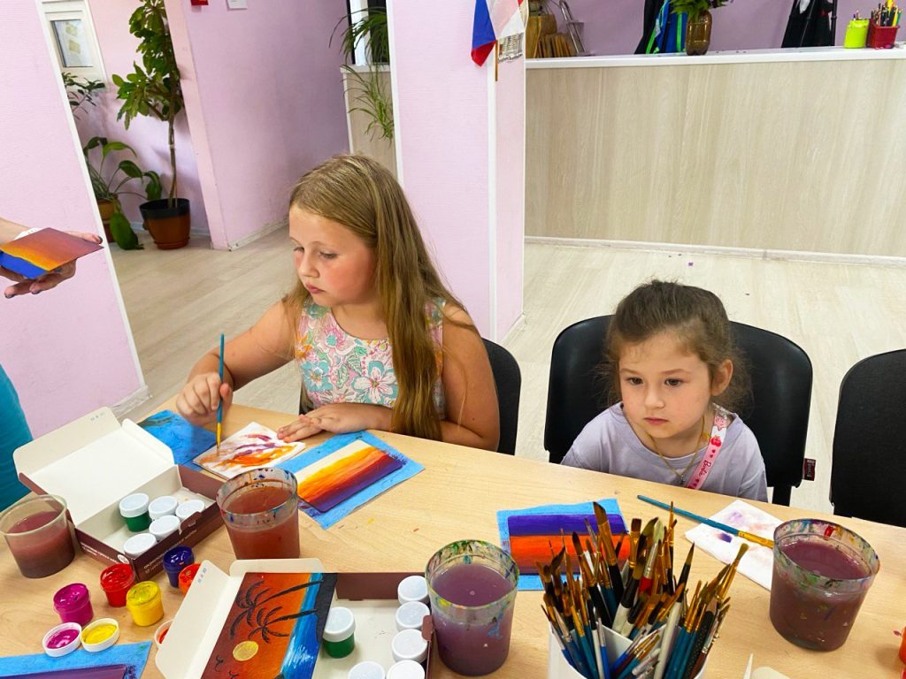 Юные горбовцы рисовали морской закат