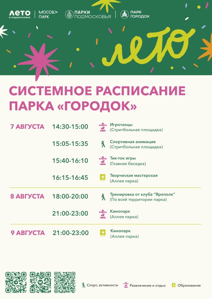 Сотрудники муниципального бюджетного учреждения культуры Рузского округа «Объединенная дирекция парков» приготовили для посетителей мероприятия, которые пройдут в парке «Городок» с 7 по 9 августа.