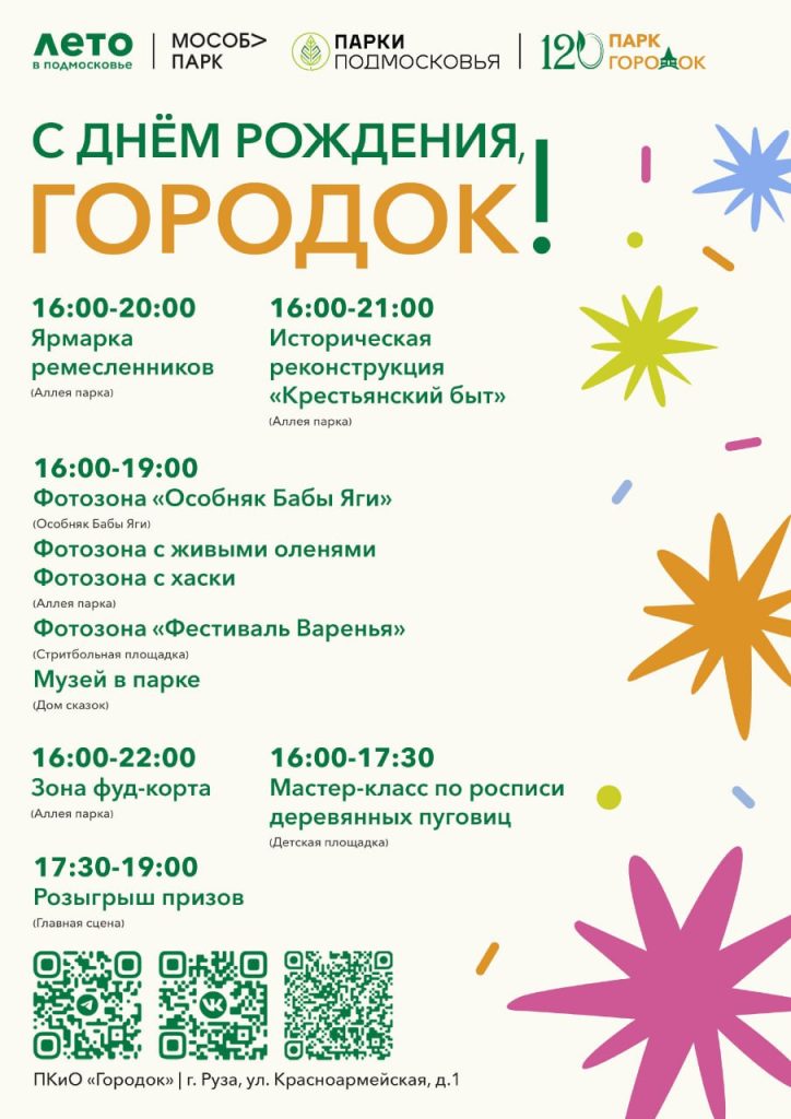 Глава Рузского муниципального округа, секретарь местного отделения партии «Единая Россия»Александр Горбылёв в своём Телеграмм-канале пригласил жителей и гостей 16 августа отметить 120-летие парка «Городок».