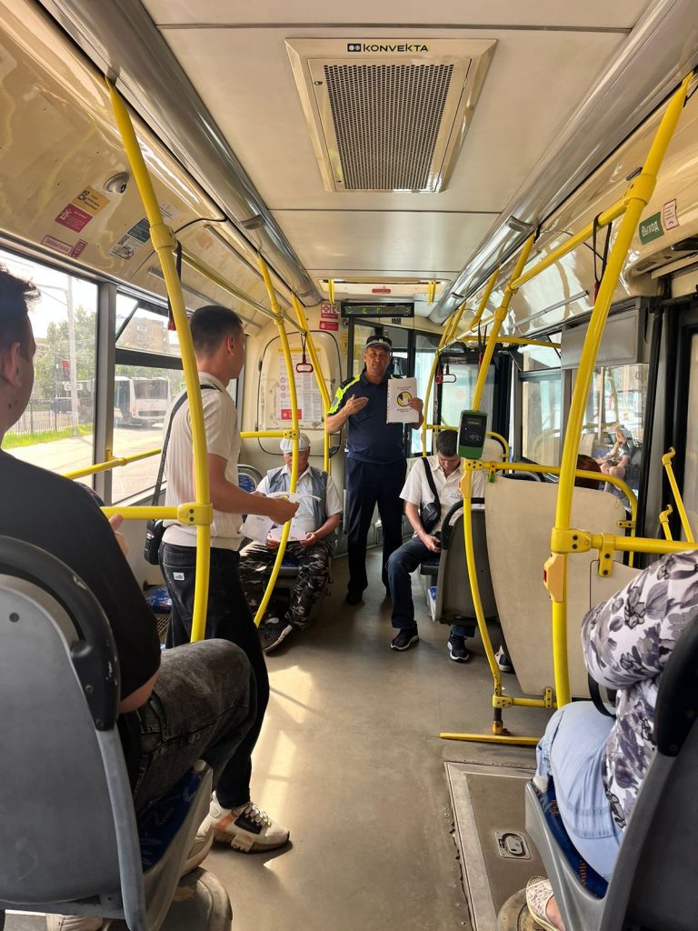 Организаторы акции напомнили пассажирам правила безопасного поведения на дорогах и при проезде в общественном транспорте. Довели информацию о случаях получения травм пассажирами при падении во время движения и напомнили о том, что во время поездки необходимо держатся за поручни. Также был проведен инструктаж водительского состава перед отправкой автобусов по маршрутам. Пассажирам и водителям вручили тематические листовки.