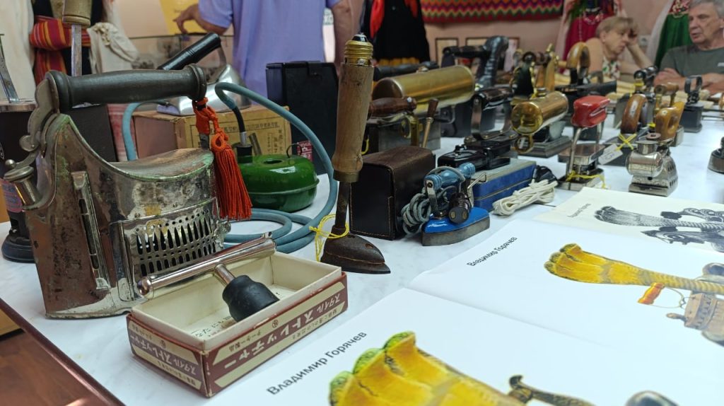 Владимир Валентинович показал гостям самые интересные утюги и другие приспособления для глажения белья из своей коллекции, рассказал об их истории.