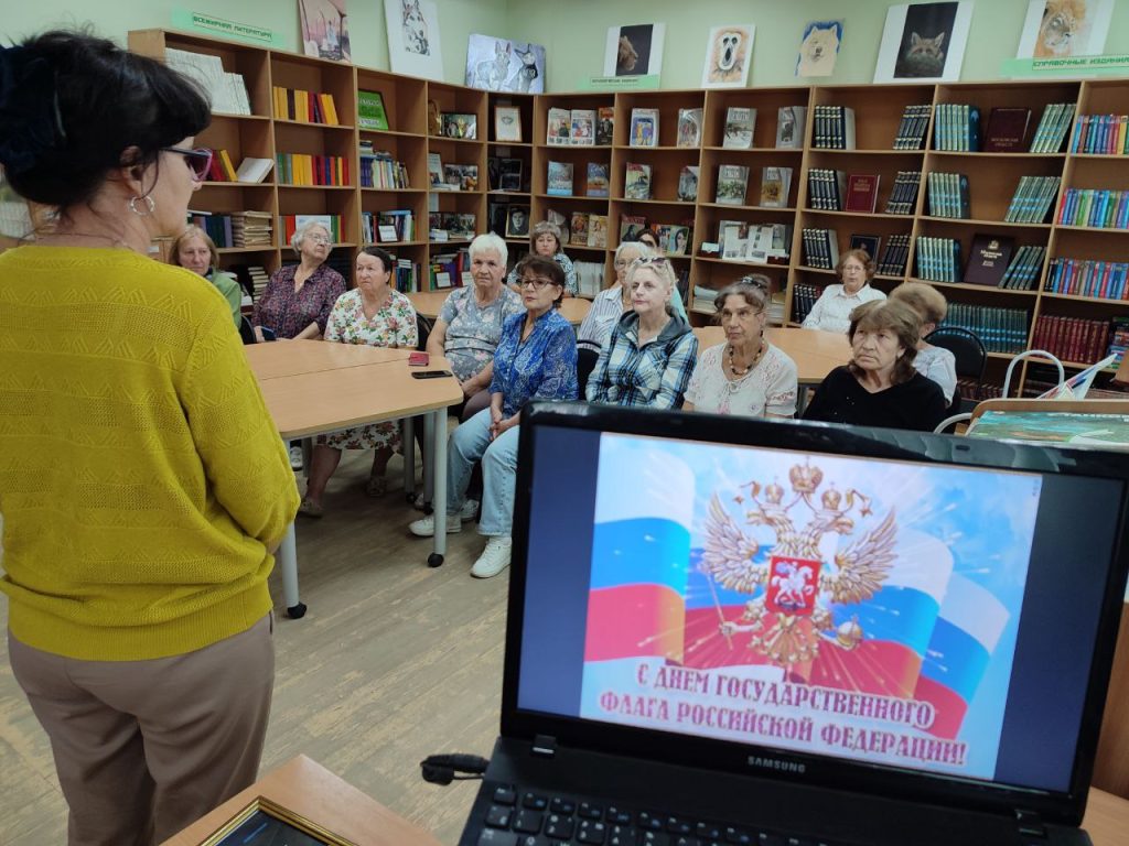 Познавательная лекция раскрыла богатую историю главного символа нашей страны — российского триколора. Участники встречи узнали, что впервые флаг появился при Петре I, а каждый его цвет несет особое значение: белый символизирует чистоту и благородство, синий — верность и постоянство, красный — мужество и силу. Им подробно рассказали о том, как менялся облик флага на протяжении веков и какое значение он имеет сегодня.