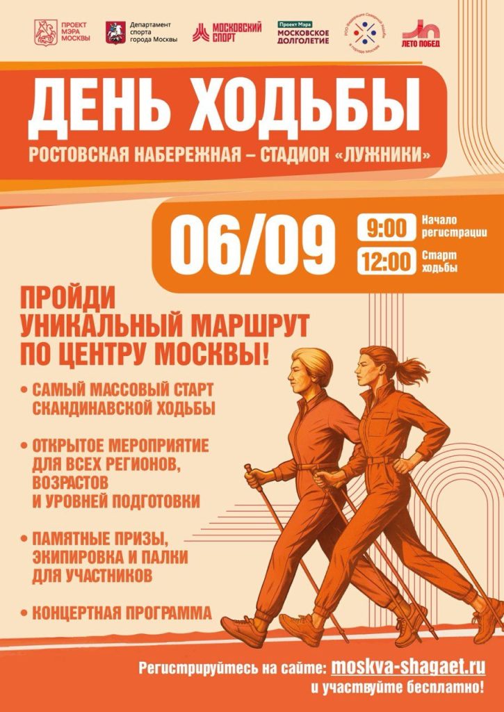 6 сентября в Москве пройдёт массовое спортивное мероприятие «День ходьбы». Управление по физической культуре, спорту и молодёжной политике администрации Рузского муниципального округа приглашает всех любителей спорта принять в нём участие.