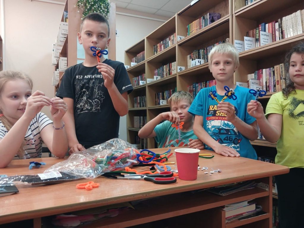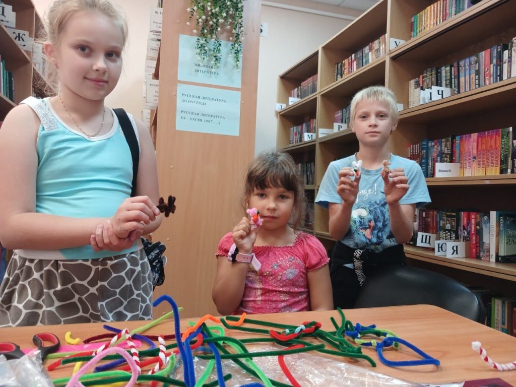 Ребята делали из разноцветной пушистой проволоки паучков, кроликов и стрекоз.