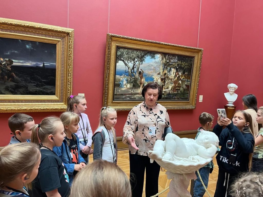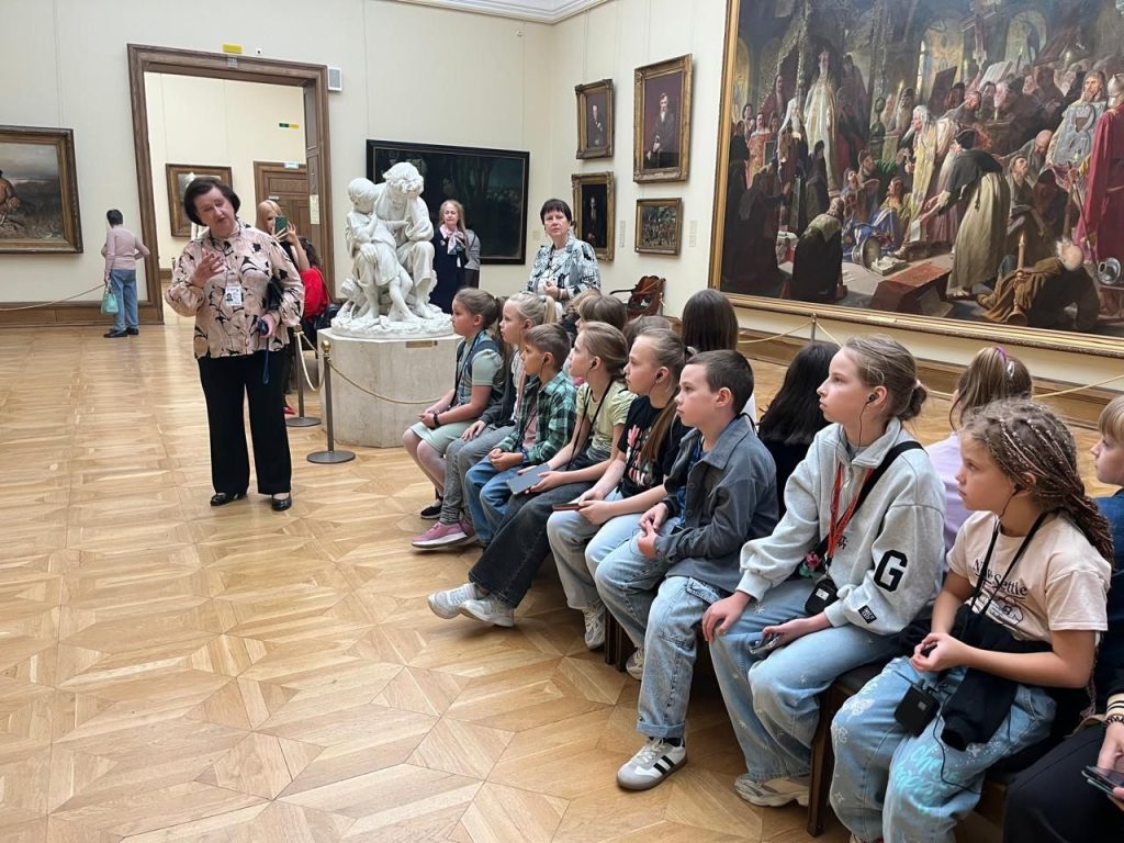Дети осмотрели множество прекрасных произведений искусства, узнали историю их создания и подробности жизни великих русских художников.