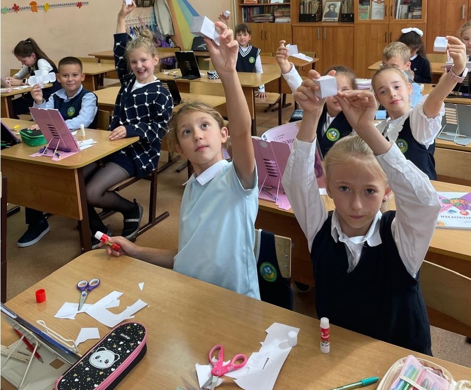 В рамках тематической недели учащиеся 3-го «э» класса с головой окунулись в мир математики. На практическом занятии «В мире стереометрии» ребята ознакомились с азами этого раздела математики, учились чертить развёртку куба, склеивать куб. На практикуме «Меры времени» повторили известные единицы измерения времени, ознакомились с новыми, тренировались определять время по часам со стрелками и самим устанавливать нужное время. Особенно увлекательным стал для третьеклассников практикум по подготовке к математическим олимпиадам.