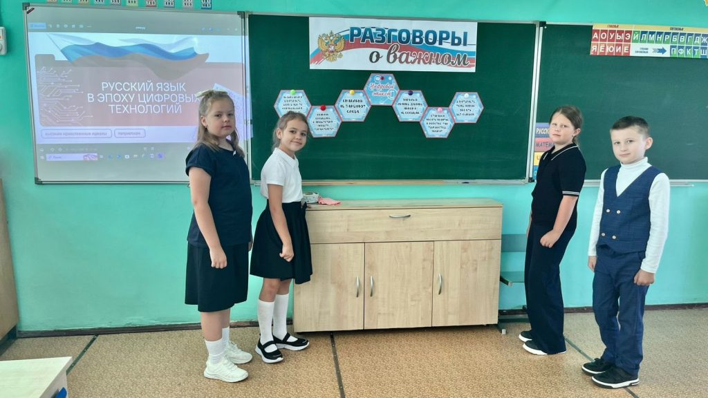 После линейки классные руководители провели внеурочные занятия «Разговоры о важном». Тема бесед звучала актуально: «Русский язык в эпоху цифровых технологий». Учителя вместе с учениками обсудили влияние современных гаджетов и виртуального пространства на нашу речь, развитие русского языка и необходимость бережного отношения к нему в условиях стремительного технического прогресса.
