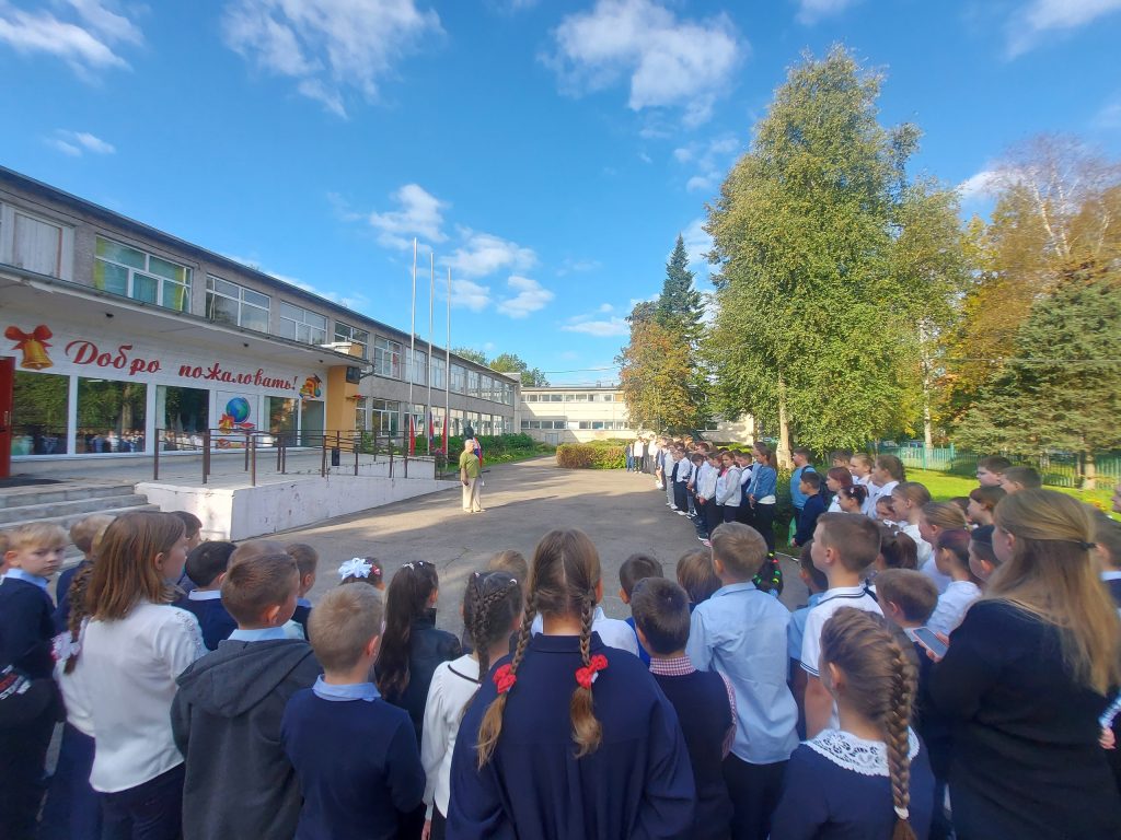 Традиционное начало учебного дня состоялось 8 сентября в МБОУ Космодемьянская СОШ. День начался с торжественной линейки, которая прошла под звуки государственного гимна Российской Федерации.