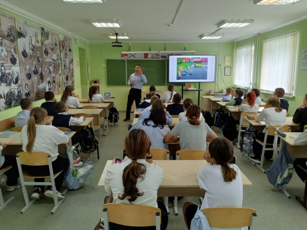 С учащимися разобрали понятие «дорога» и какие элементы к ней относятся. Вспомнили правила перехода пешеходами и велосипедистами проезжей части на регулируемых и нерегулируемых перекрестках, а также правила движения вдоль проезжих частей. Обсудили причины, из-за которых происходят ДТП, и как избежать опасные ситуации. Побеседовали об ответственности, которая предусмотрена для участников дорожного движения.