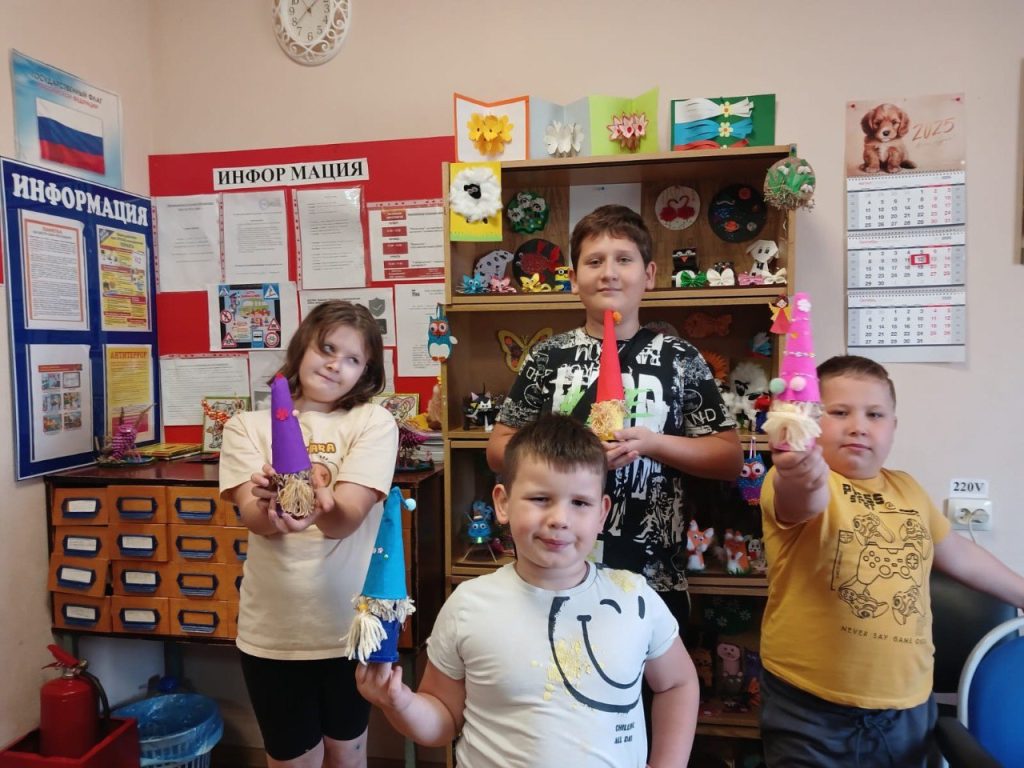 Ребята мастерили гномиков из втулок от туалетной бумаги, гофрированной бумаги и фетра. Затем украшали свои поделки декоративными элементами: сухоцветами, бусинками, стразами.