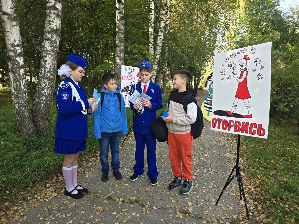 Юные инспекторы движения под руководством своих наставников В.Д. Петровой и А.А. Несмеяновой изготовили серию плакатов, которые акцентируют внимание на бдительности при переходе проезжей части, недопустимости использования мобильного телефона и наушников, опасности питбайков на дорогах общего пользования и взаимной ответственности водителей и пешеходов.