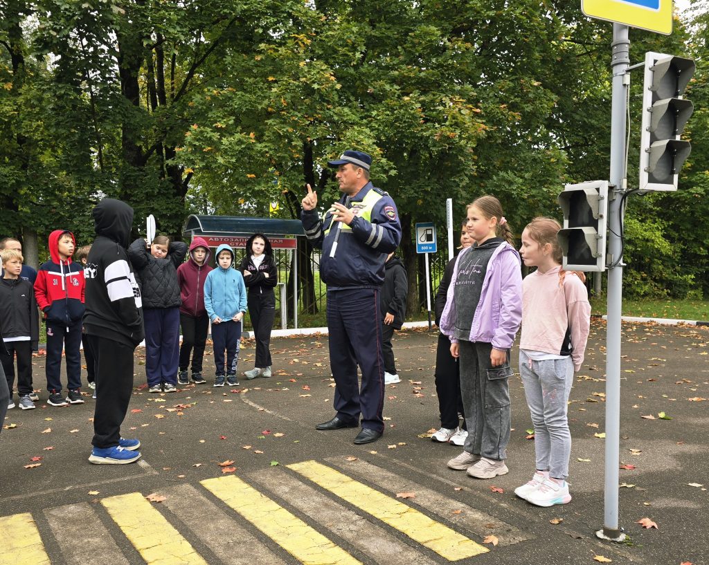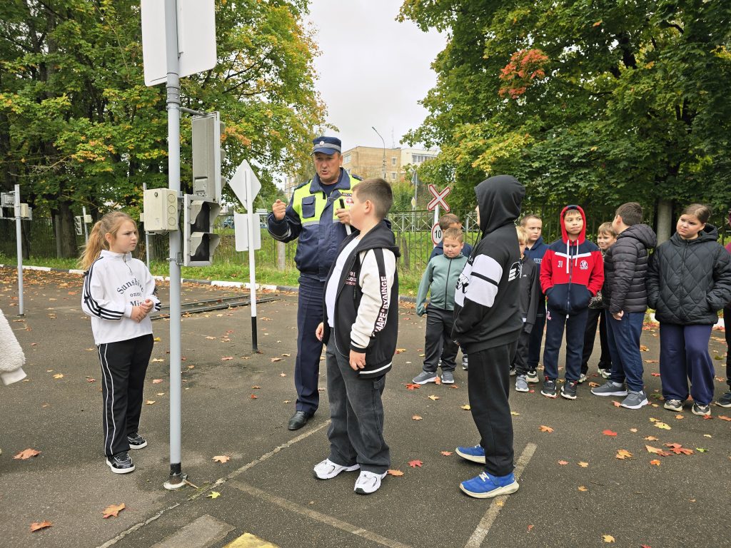 Ребята не только получили теоретические знания от полицейских, но и закрепили их на практике. Они отработали правила безопасного перехода проезжей части по пешеходному переходу, повторили значения сигналов светофора и жестов регулировщика.