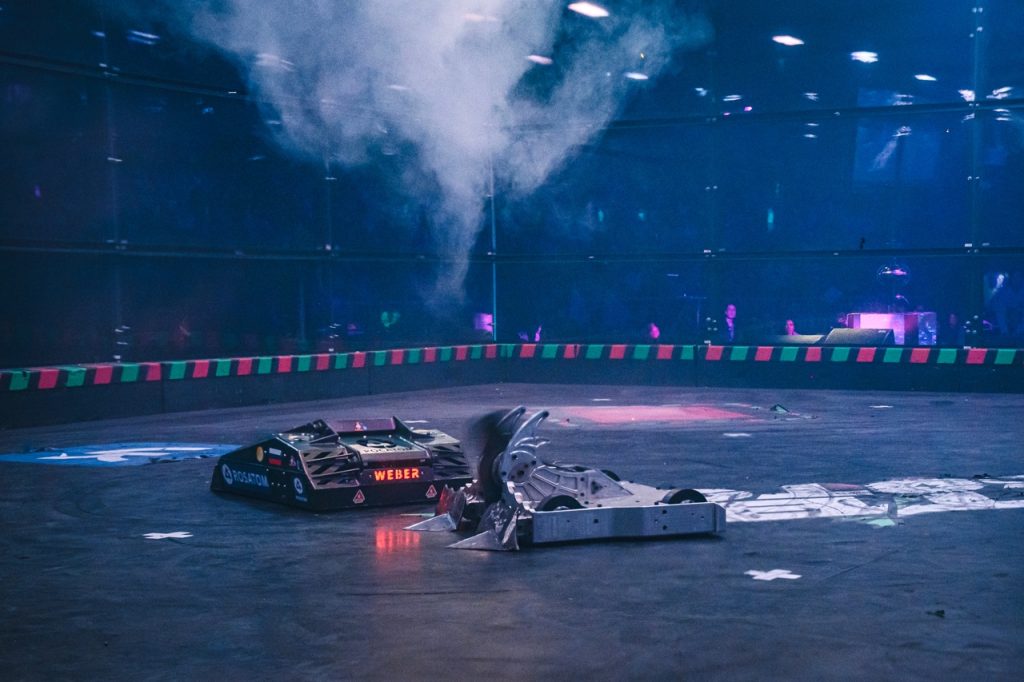 12 — в спаррингах мини-роботов до 1,5 кг.