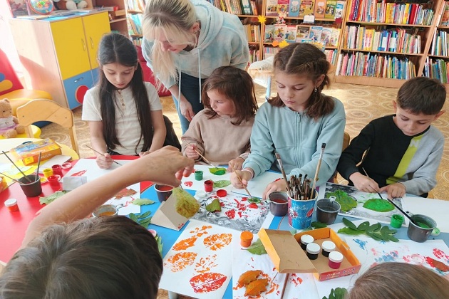 В Рузской библиотеке использовали осенние листья в качестве природных штампов