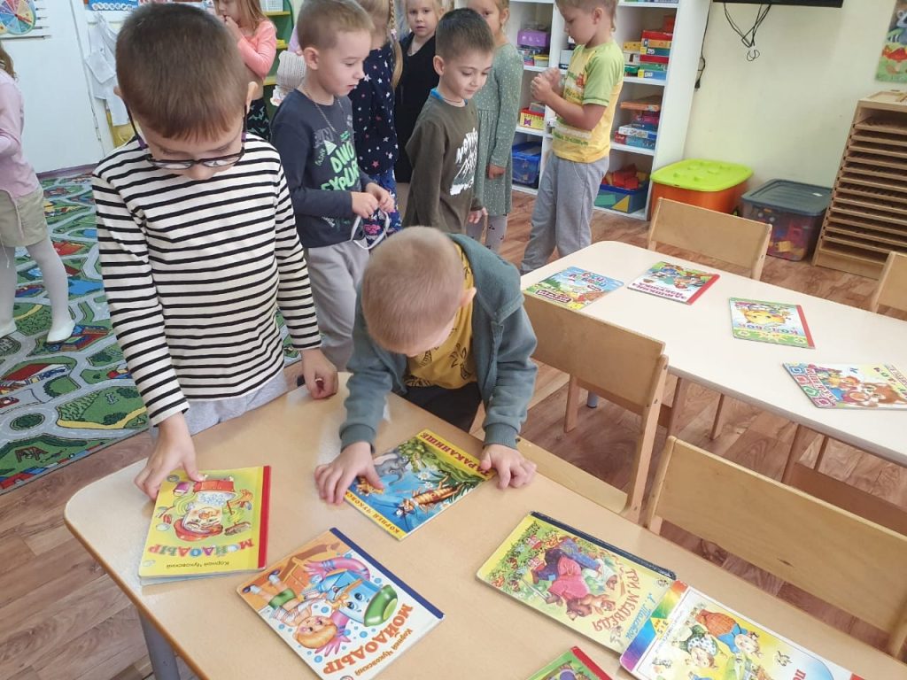 В детском саду в свободном доступе детей находятся различные произведения: рассказы, сказки, энциклопедии.
