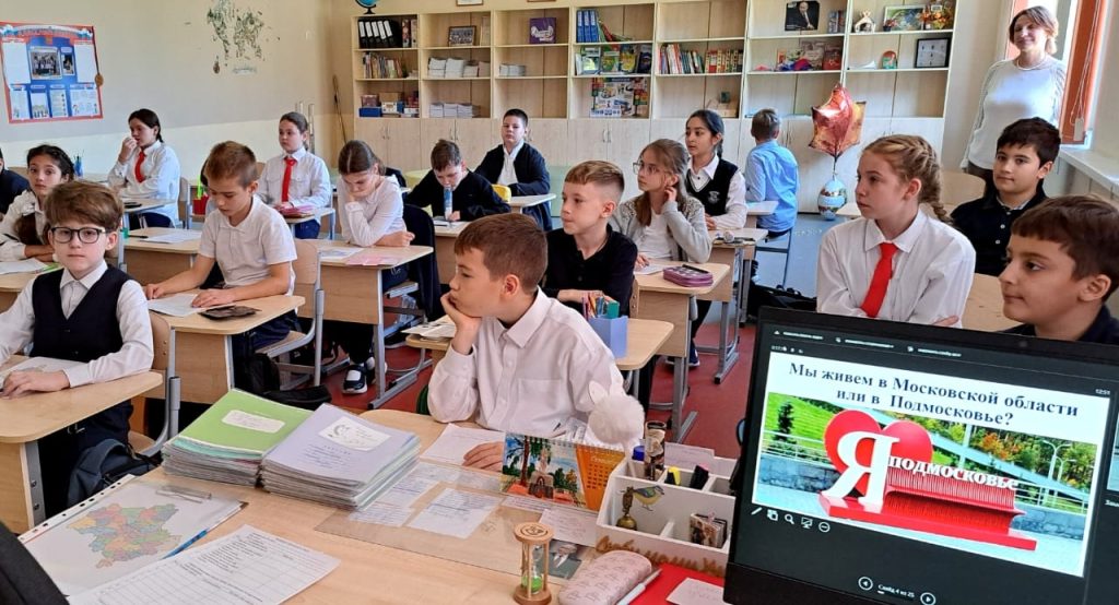 Первое занятие было посвящено важной теме «Символы Подмосковья». Преподаватель построил изучение материала с учётом уже имеющихся знаний учеников, многие из которых активно путешествуют по Московской области.