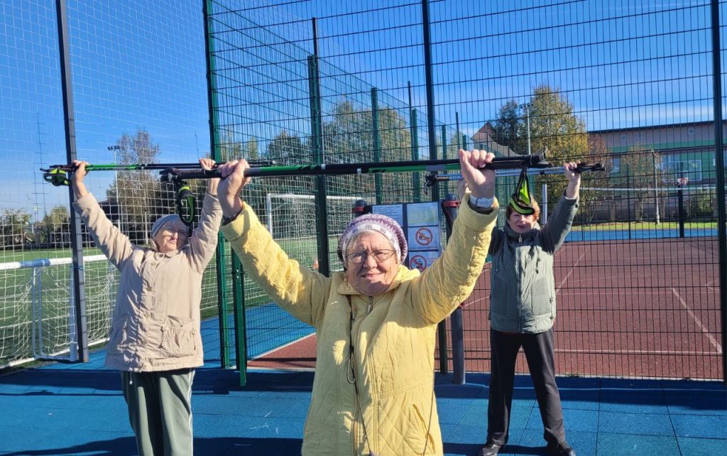 Участники программы «Активное долголетие» Рузского муниципального округа с удовольствием занимаются скандинавской ходьбой.