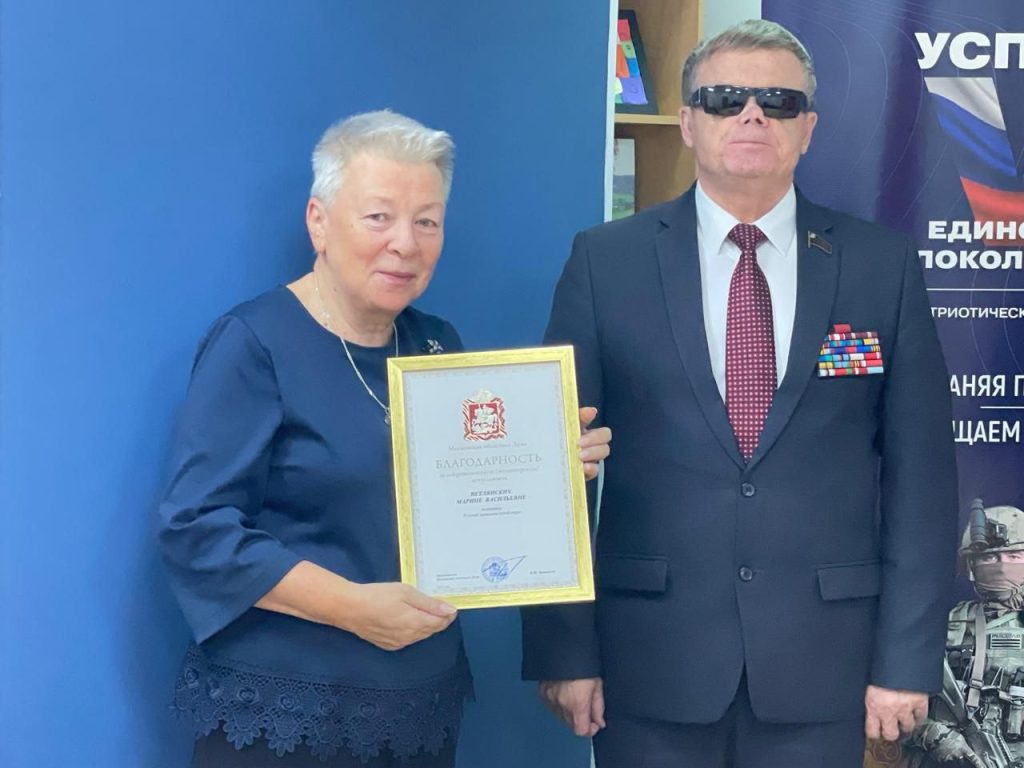 На торжественной части мероприятия депутат вручил награды Московской областной Думы самым активным волонтёрам, которые внесли значительный вклад в сбор и отправку гуманитарных грузов для военнослужащих в зону специальной военной операции.