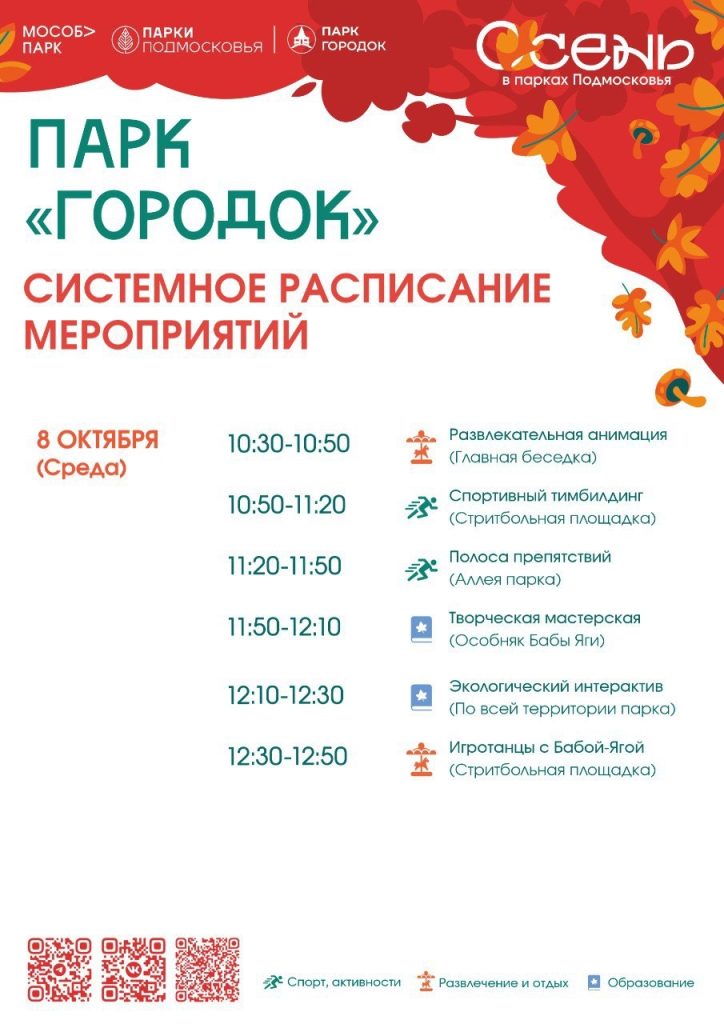 Парк «Городок» приглашает на системные мероприятия 8 и 9 октября
