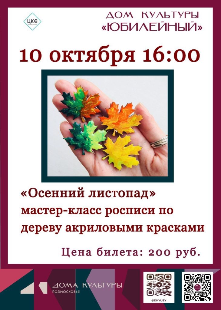 Дом культуры «Юбилейный» приглашает всех желающих на увлекательный мастер-класс росписи по дереву акриловыми красками, 10 октября в 16.00. Это отличная возможность не только провести время с пользой, но и создать уникальное произведение искусства своими руками.