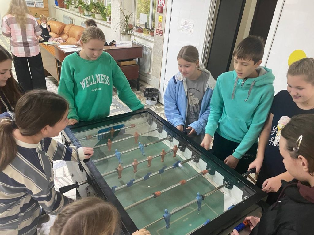 В уютном зале Космодемьянского дома культуры Рузского муниципального округа царила атмосфера азарта и веселья: ребята сражались в настольный футбол.