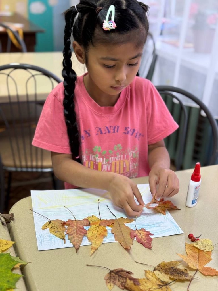Особенностью мастер-класса стало использование натуральных осенних листьев в создании композиций. Ребята с большим энтузиазмом включали природные элементы в свои работы, что придало картинам особую живость и оригинальность.