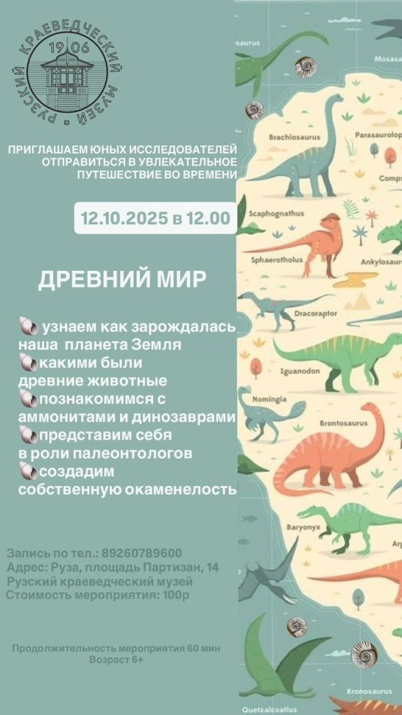 Дети узнают, как зарождалась наша планета Земля и какими были древние животные, ознакомятся с аммонитами и динозаврами, представят себя в роли палеонтологов и создадут собственную окаменелость.