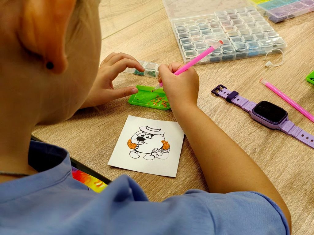 В рамках мастер-класса посетители продолжили свое литературное путешествие по страницам книги Андрея Иванова «Магазинчик чудес». Вдохновленные сюжетом, они создавали свои собственные шедевры с помощью алмазной мозаики. Этот процесс не только развивал их креативные способности, но и позволял глубже погрузиться в мир фантазий и чудес, описанных в книге.