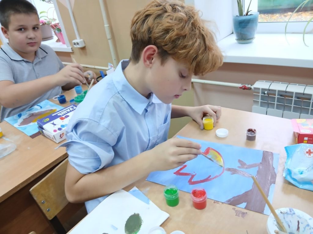 В 4 «В» классе Тучковской СОШ №1 на уроке изобразительного искусства обучающиеся нарисовали осенние листья. Ребята с увлечением работали над своими произведениями, стараясь передать всю красоту и богатство осенней палитры.