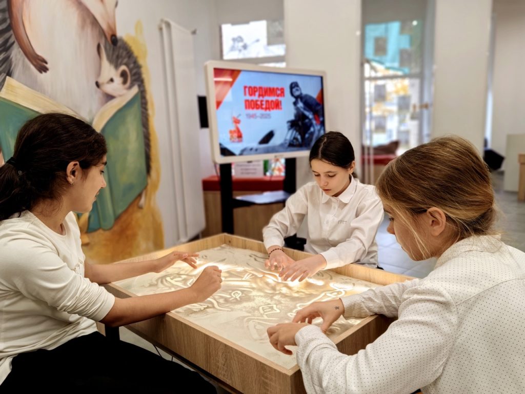 На очередном занятии студии «Песочный городок» Рузской центральной библиотеки гости отправились в увлекательное путешествие по книге Александра Астрихинского «Морское путешествие енота Кисточки».