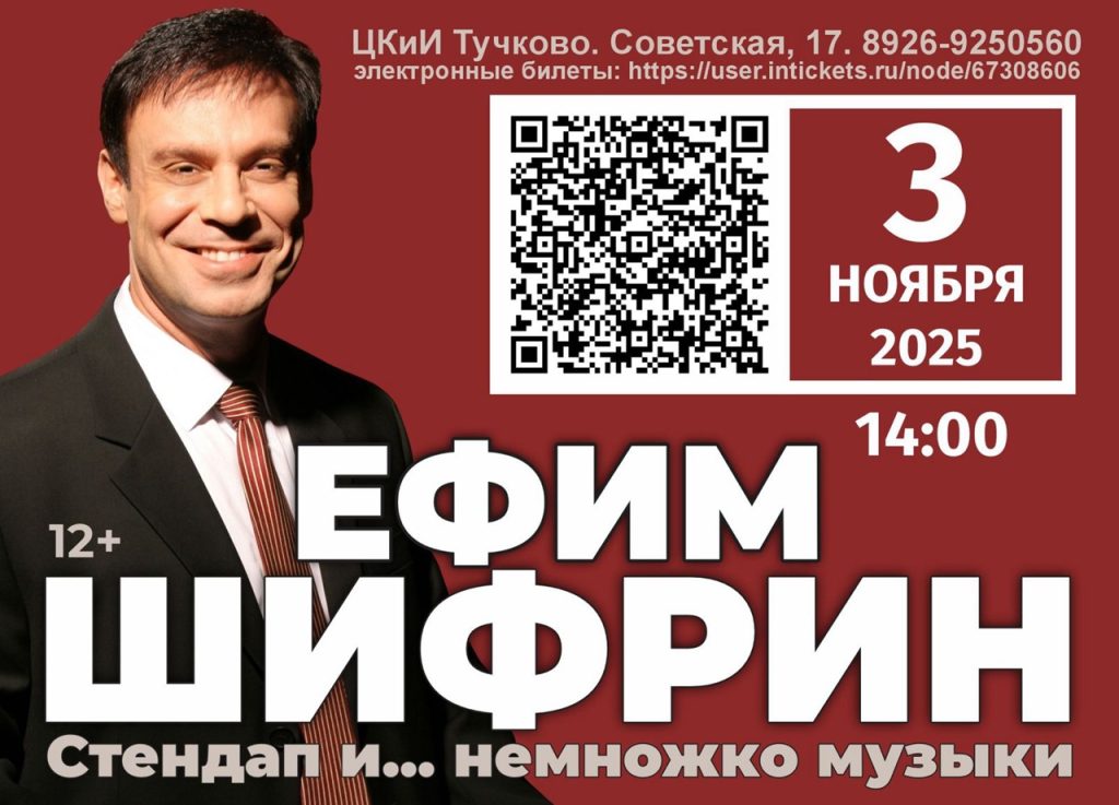 ЦКиИ Тучково приглашает на концерт Ефима Шифрина «Стендап и… немножко музыки» 3 ноября в 14.00.