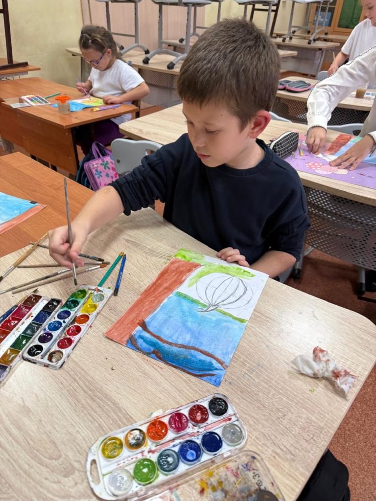 Огромная благодарность Оксане Игоревне за вдохновение и проведённый мастер-класс! Также выражаем признательность юным художникам за их творчество. Ваши картины согревают душу и наполняют класс яркими красками.