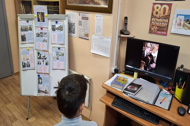 Особое внимание было уделено творческому взаимодействию: дети прочли стихотворения «Я покинул родимый дом…» и «Собаке Качалова», посмотрели видеоролики по этим произведениям, созданные с помощью нейронных сетей, где стихи были дополнены музыкальным сопровождением.
