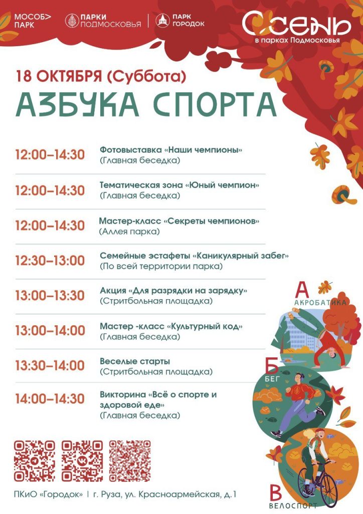 Парк культуры и отдыха «Городок» 18 октября приглашает на общеобластное мероприятие «Азбука спорта»!