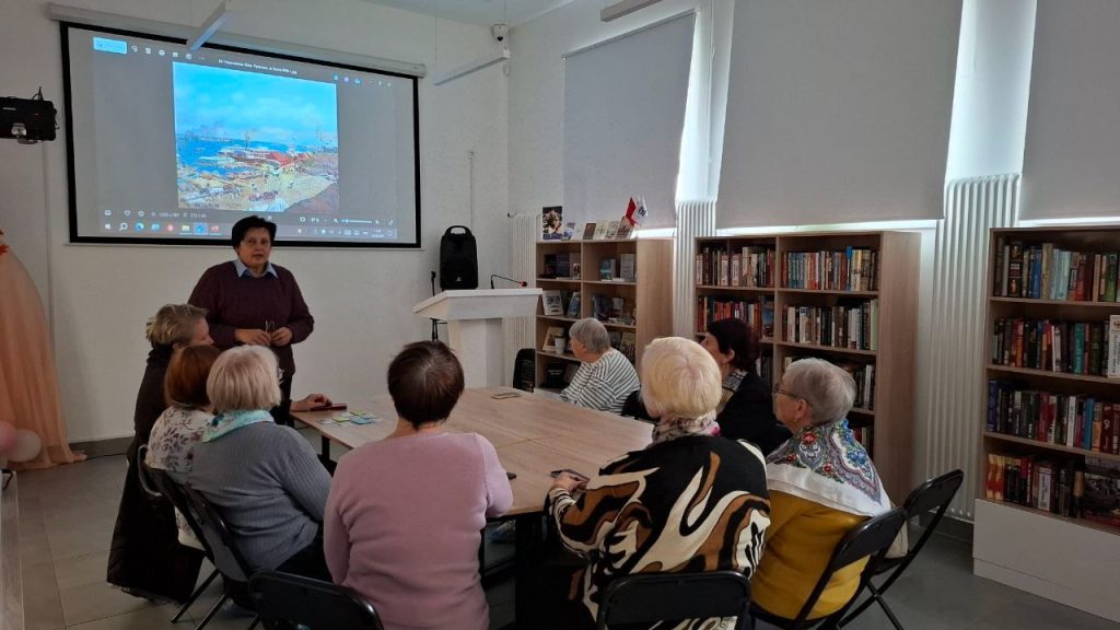 Участники узнали много любопытных фактов из жизни и творчества этого великого мастера. Библиотекарь подробно рассказала о художественных стилях, в которых работал Юон, подчеркнув особенности его любимой тематики — русская природа и архитектура. Его полотна отражают исторические сооружения, ставшие визитной карточкой России: старинные храмы, мосты, крепости и башенки. Среди известных произведений: «Троице-Сергиева лавра зимой», «Мост Москворецкий», «Ростовский кремль».