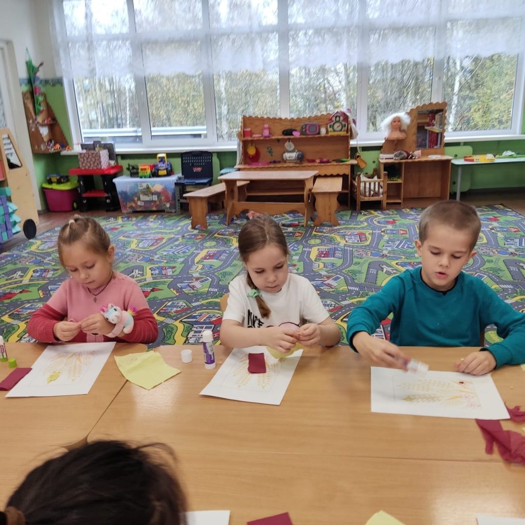 Практическая деятельность была организована в форме создания аппликации. Дети с большим интересом работали над созданием образа золотых колосьев, используя различные материалы и техники.
