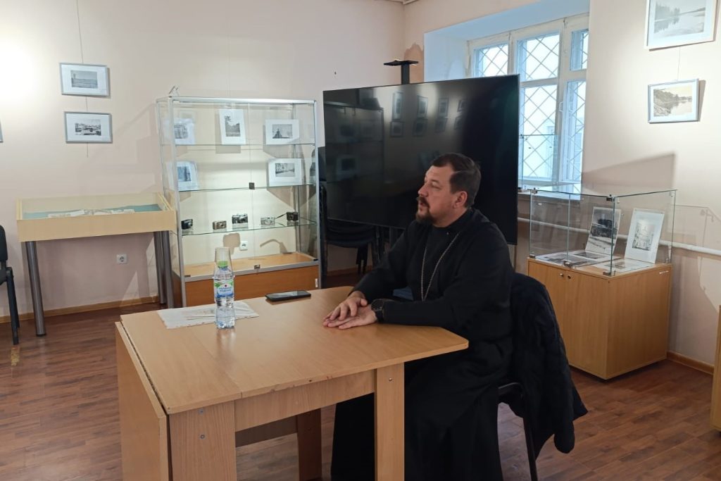 Гостем музея стал отец Александр Астафьев, настоятель Успенского храма (д. Борзецово) и церкви Рождества Богородицы (д. Никольское). Он рассказал о судьбе и духовном подвиге святителя Тихона (1865–1925 гг.), который возглавил Церковь в самый трагический период гонений.