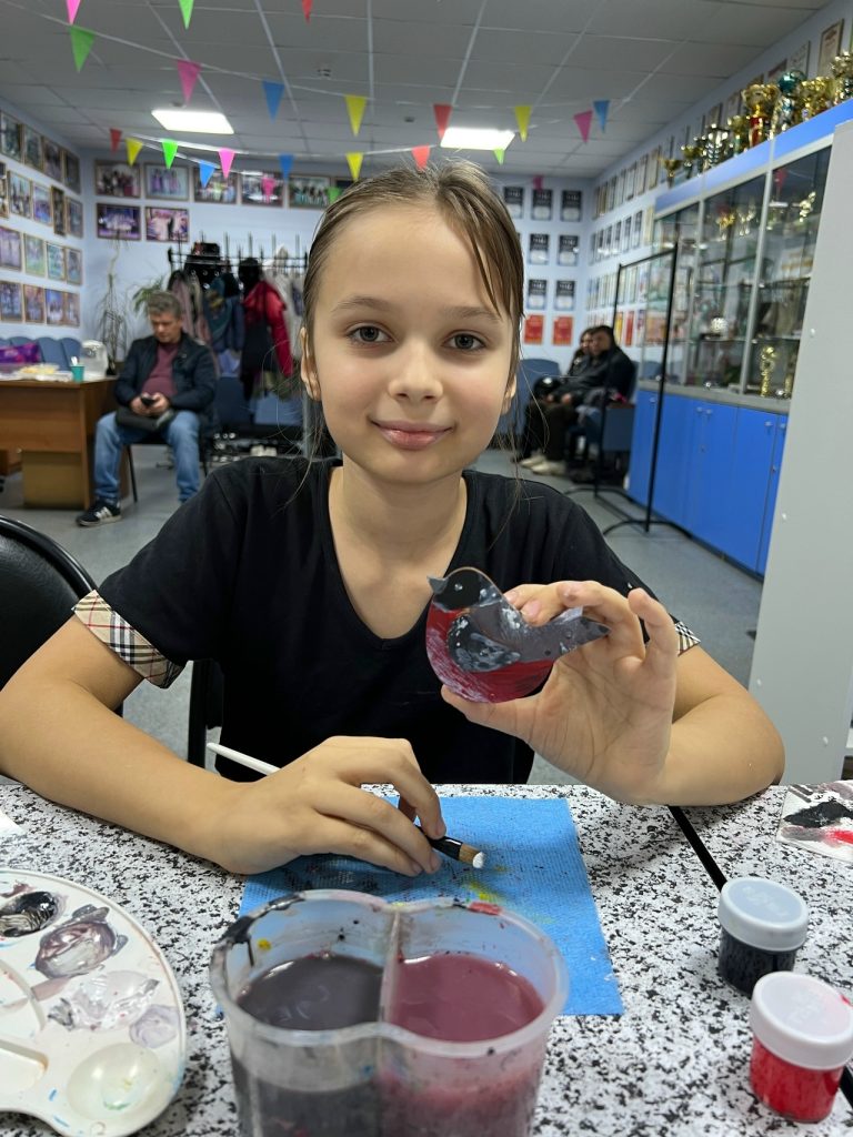 В результате все создали яркие и красочные фигурки снегирей. Эти деревянные поделки станут отличным украшением интерьера или прекрасным подарком для близких.
