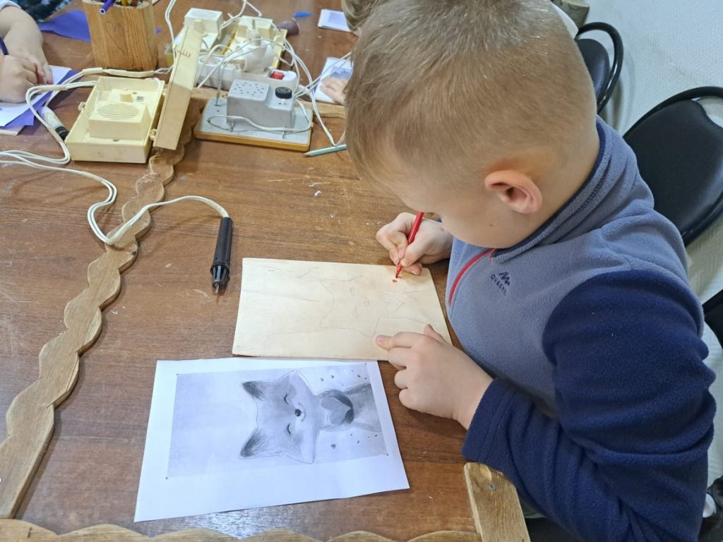 Осень — время года, когда природа поражает воображение яркими красками. Участники мастер-класса решили запечатлеть эту красоту на своих работах. Они создали уникальные поделки, на которых отразили осенние сюжеты и истории. Для придания изделиям индивидуальности ребята использовали технику выжигания и раскрашивания.