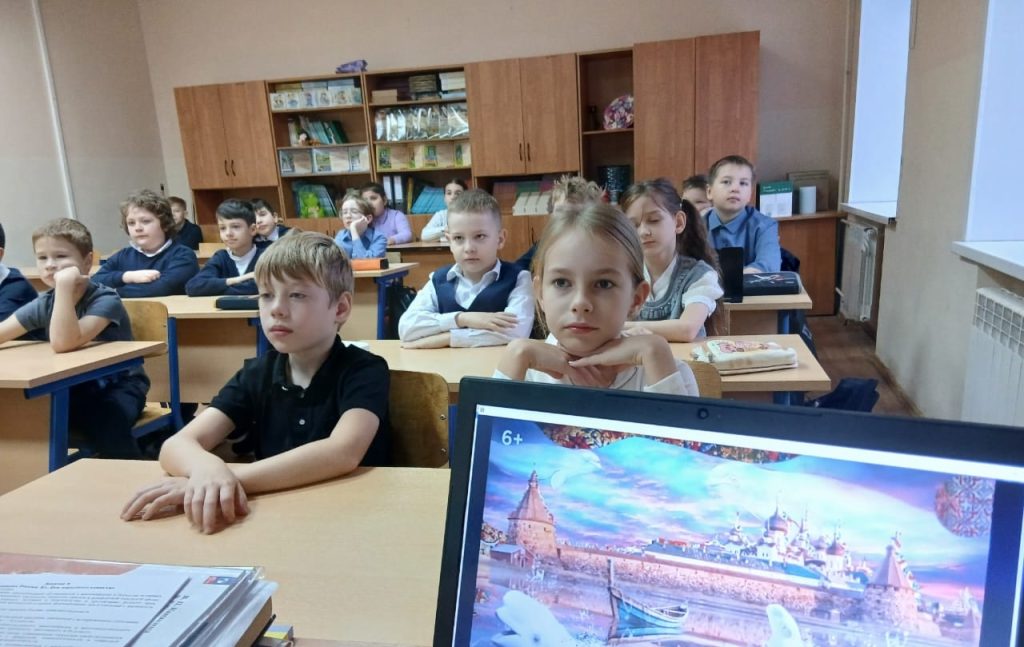 Образовательная часть занятия включала просмотр познавательного видеоролика о городах России и Подмосковья. Ученики увидели, как в каждом уголке страны воплощается этнокультурное многообразие и единство народов.