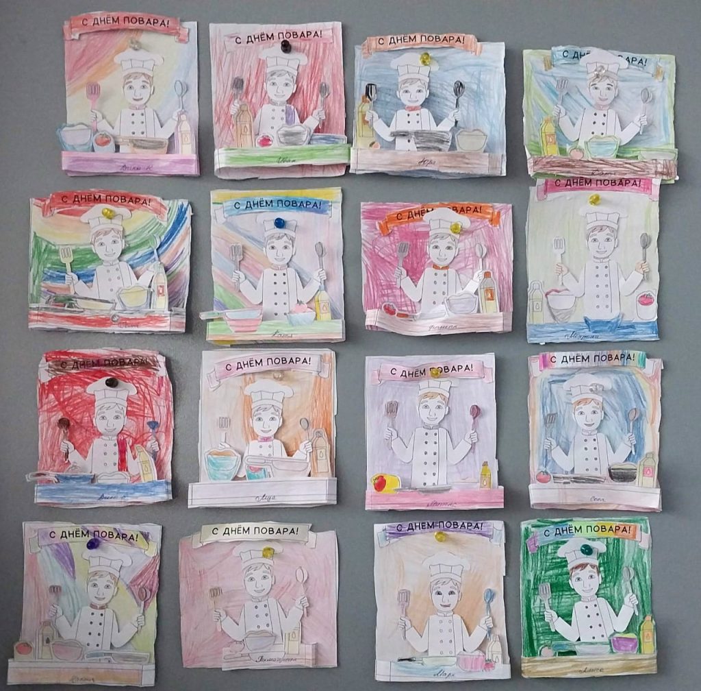 Мероприятие состоялось в честь Дня Повара, отмечаемого в России 20 октября. Воспитанники группы «Пчёлки» с энтузиазмом приняли участие в создании поделок. Дети изготовили трогательные аппликации с изображением маленьких человечков в поварских колпаках, раскрасив их яркими карандашами. Готовые работы получились не только красивыми, но и наполненными теплом и душевностью.