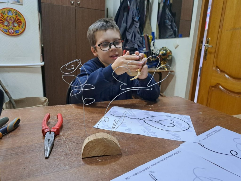 Юные участники стремились воплотить волшебство в реальность, создавая цветок, способный исполнять желания. Для этого им предстояло выполнить ряд кропотливых задач: подготовить основание, отмерить и согнуть проволоку в нужные формы, чтобы получился изящный и волшебный цветок.