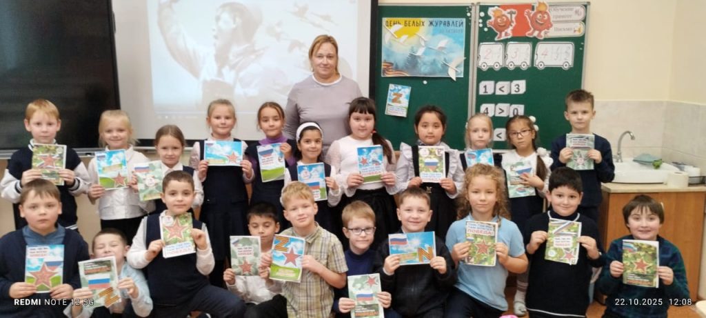 Ученики активно участвовали в создании совместного плаката, посвященного Дню Белых Журавлей. Они также сделали открытки для воинов России, несущих службу на рубежах Родины. Эти открытки, наполненные теплом и поддержкой, станут для солдат бесценным подарком, как и письма и рисунки, которые всегда несут в себе частичку человеческой души.