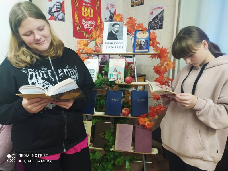 На выставке были представлены как широко известные произведения, такие как «Господин из Сан-Франциско» и «Темные аллеи», так и менее знакомые стихи и рассказы. Особое внимание было уделено произведениям, посвященным природе и крестьянской жизни, которые вызвали живой интерес у ребят. Они с удовольствием слушали рассказы о красоте русской природы и быте крестьян.