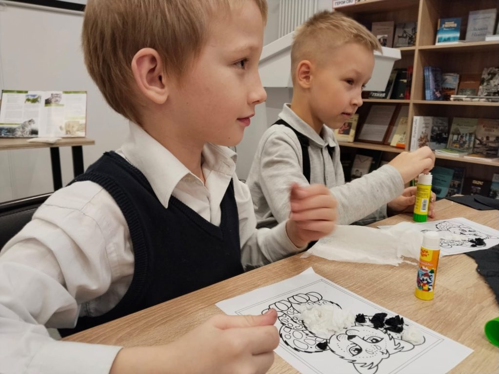 Творческая составляющая встречи стала приятным завершением познавательного мероприятия. В память о посещении библиотеки дети приняли участие в мастер-классе по изготовлению открытки «Снежный Барс».