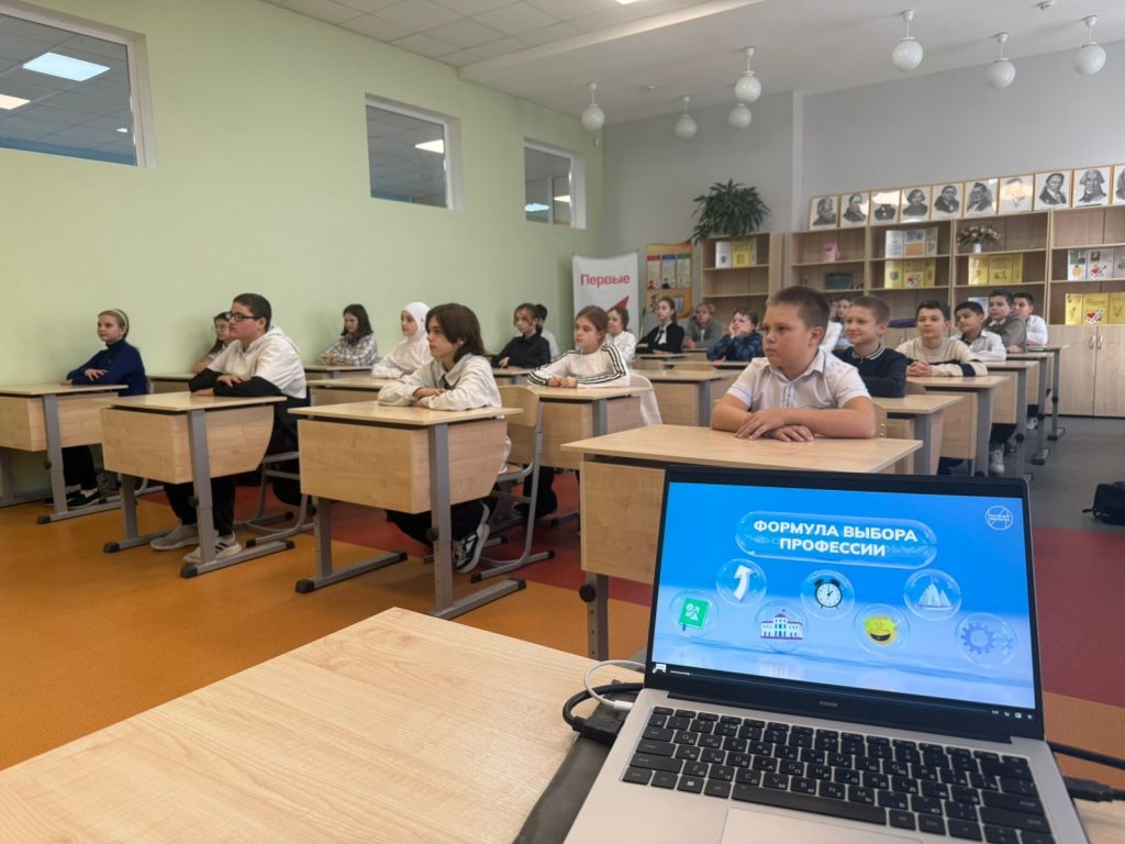 Новое профориентационное занятие прошло в 6-а классе Тучковской СОШ №1 в рамках курса «Россия — мои горизонты». Урок был посвящён важному инструменту профессионального самоопределения — формуле выбора профессии.