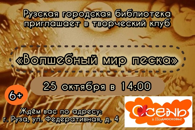 Рузская городская библиотека приглашает 25 октября в 14:00 в творческий клуб «Волшебный мир песка».